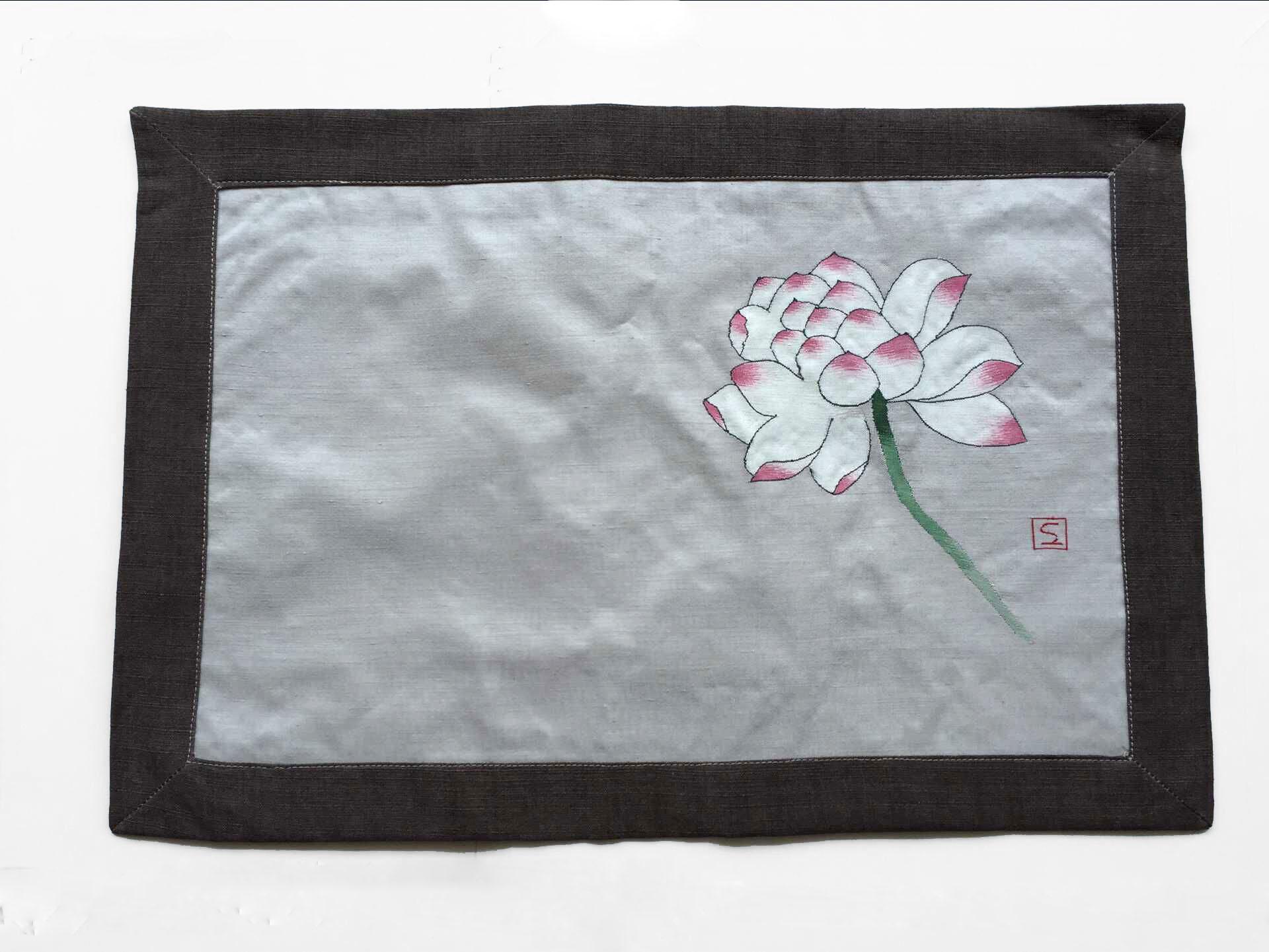 缂丝茶垫荷花灰边